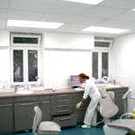 arztpraxis gefühlvoll eingefügt. die dental-technischen anlagen wurden behutsam in das bestehende gebäudegefüge integriert. | |