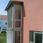 beschreibung in einem neubaugebiet entstanden vier doppelhaushälften mit garage. die häuser werden durch eine gerade einläufige treppe in der mitte des hauses |