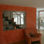 in zwei bereiche gegliedert: eingang mit küche und essbereich - und wohnen. im üblicherweise schlecht belichteten mittelteil von reihenhäusern gibt es hier ausreichend | |