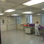 gespült, im reinraum wird die wäsche unter dem laminarflow zusammengelegt und verpackt. bei bedarf kann die reinraumqualität gesteigert werden bis klasse 100. |