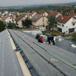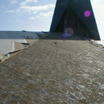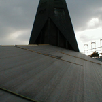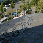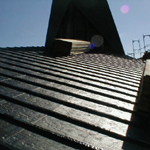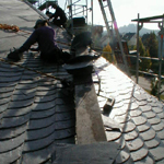 dach schon immer ein schwachpunkt, die flache dachneigung hat wiederholt zu problemen geführt. um den charakter zu erhalten wurde das dach wieder mit naturschiefer gedeckt, diesmal jedoch |