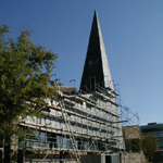 beschreibung die ausergewöhnlich gestaltete kirche ist ein herrausragendes beispiel für die nach-kriegskirchen-architektur. leider war das mit naturschiefer gedeckte |