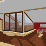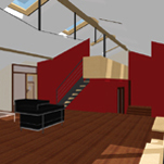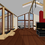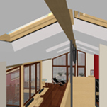 gebäudes begrenzt so das eine "leicht" -konstruktion gewählt wird. die lasten werden zentral nach unten abgeleitet. unter dem großen dach entsteht ein großzügiger wohnraum. |