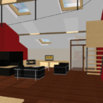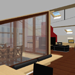 kochen und essen erhalten eigene bereiche sind aber mit dem wohnraum verbunden. der bereich mit den zimmern zum schlafen und für die kinder ist seperat und leicht versetzt. | |